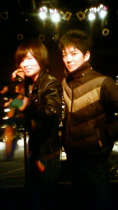 見てくれたみなさんどうもありがとうございました。 この日は最後にRandy NewmanのYou've got a friend in meを演奏したんですけど アンケートを見たらこれが一番評判がよくて・・・複雑(笑) この日の対バンで特に強烈だったのはマゾヒステリックまりえちゃぁんバンド。 完全にイってます(笑)ぜひ生で一度ご覧あれ。 あとカルシウムスープ。すごいポップな曲を書きます。 メンバーもすごくいい人たちで。 2バンドとも自分より年下ということです。 うかうかしてられんな。 この日は仙台に戻って来ている某エレキ王子も見に来てくれました。 帰り際に一緒に記念撮影。 ちなみに彼がもってるのはベースです。 革ジャンとヘアースタイルのおかげで ディーディーラモーンみたいになってました。 エレキ王子はこないだのHa' Pennyも見に来てくれてました。 ありがとうございます! そういえば、帰国して初めてのパースクだったんですね。ただいま。 そして1月にはここでビッグイベントが控えております・・・ その前に12月、ライブが決まってます。 告知はのちほど。 ではでは。